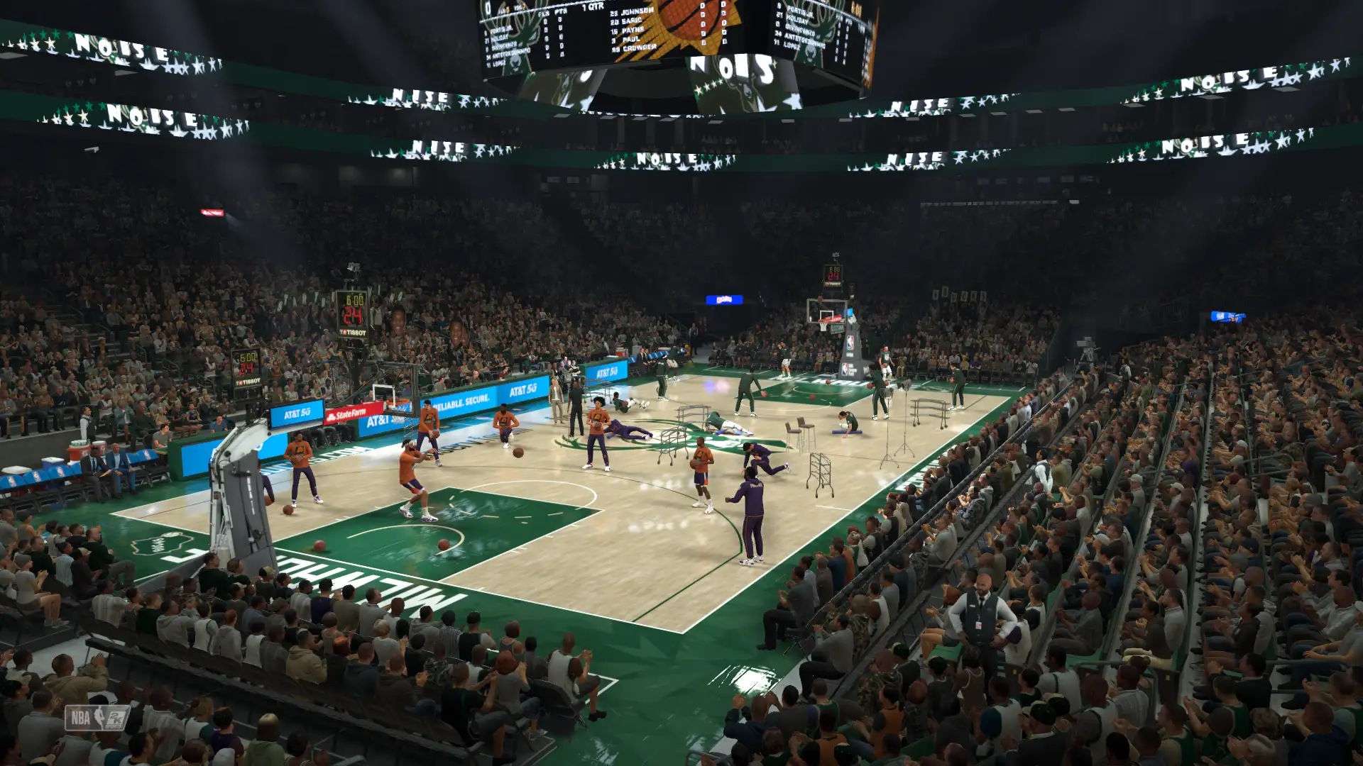 4. Аутентичная атмосфера NBA, включая настоящие команды, игроков и стадионы.