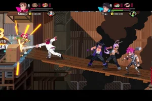 Классический side-scrolling beat 'em up с современной динамикой: комбо-атаки, суперприёмы, грабли и даже велосипеды в ход идут в массовых драках. Враги падают под ноги, боссы устраивают эпичные баталии, а город полон секретов — от скрытых магазинов до побочных квестов. Можно играть в одиночку или в кооперативе (локально или онлайн), а прокачка персонажей и новые умения добавляют глубины. Умер? Выбирай: возродись на точке или вернись на базу, чтобы сменить экипировку или героя.