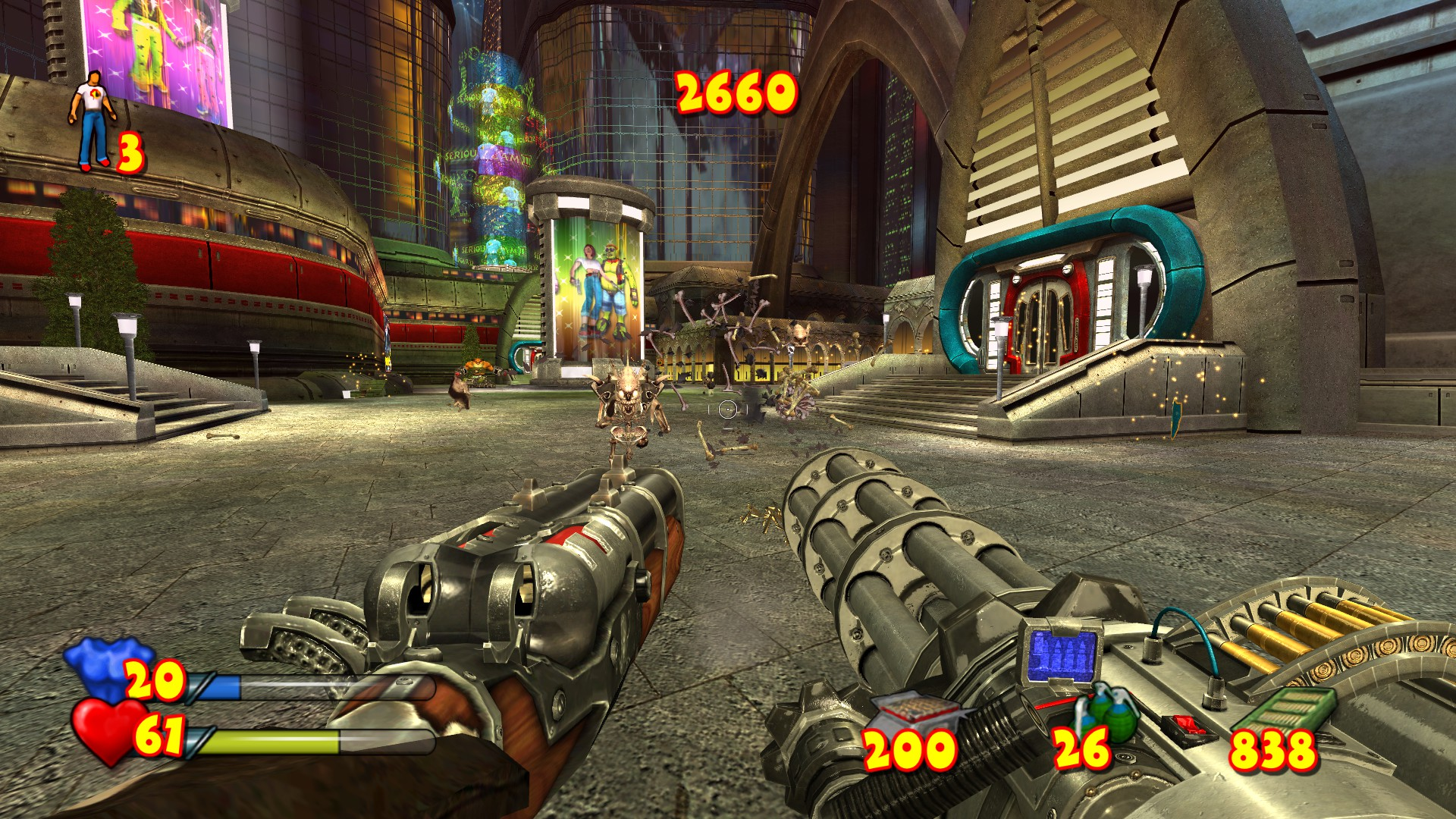 🎮 Технологический прорыв: Игра работала на полностью обновлённой версии движка Serious Engine, который позволил создавать огромные открытые пространства и выводить на экран невиданное ранее количество врагов.